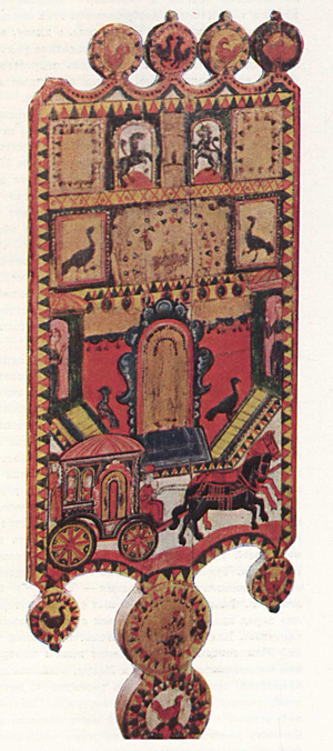 Деталь росписи северодвинской прялки. 40-50-е гг. XIX в. Пермогорье. Архангельская губерния.