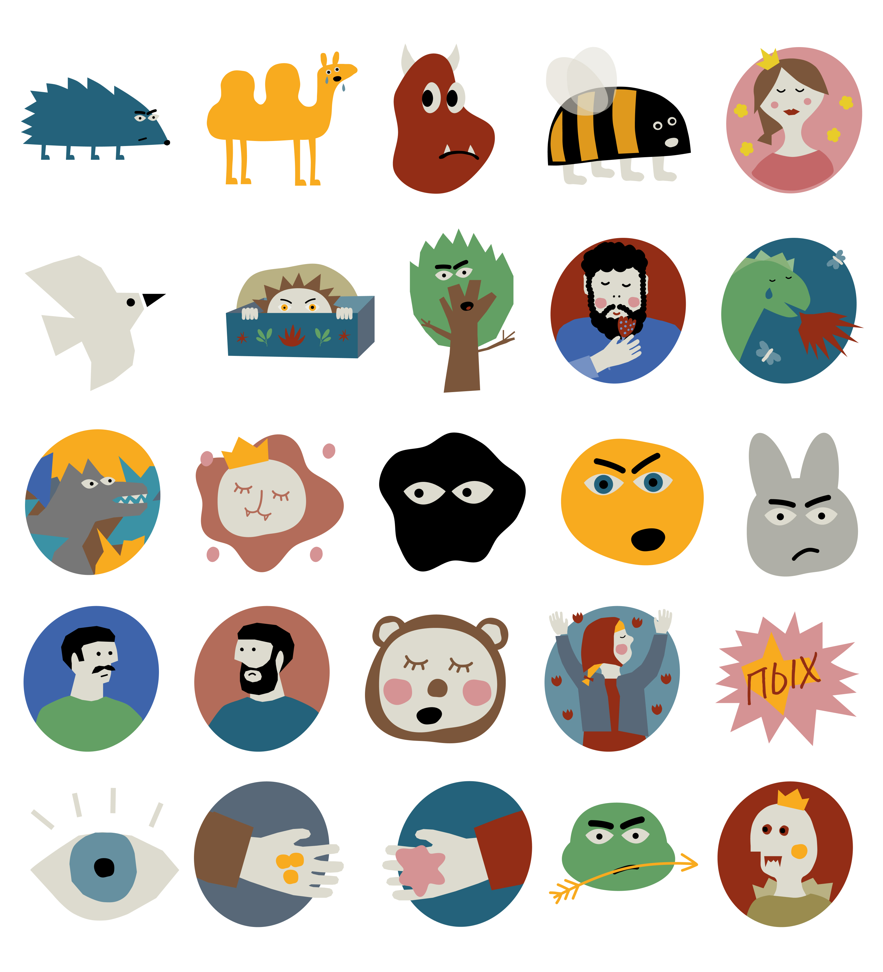 Каркаладильцы. Стикерпак для telegram с персонажами вселенной подкаста «Каркаладил и пыхтелка»
