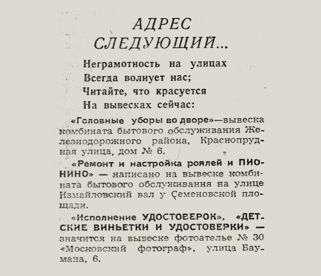 […] Одобрен список 46 магазинов, которые обязаны по требованию покупателей доставлять им на дом приобретённую мебель, электрохолодильники, швейные машины, рояли, пианино, пылесосы, телевизоры, радиоприёмники и другие товары. Утверждены прейскуранты оплаты этих услуг.