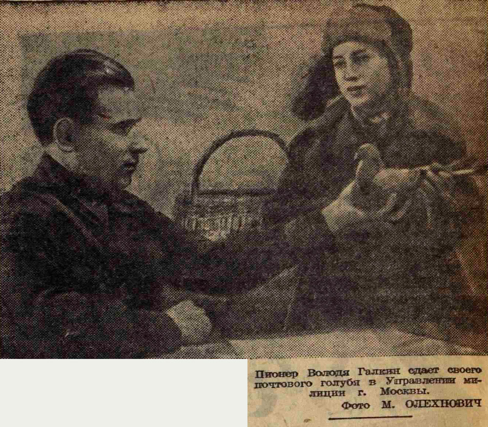 Вчера был последний день сдачи голубей. При приемке голубей нередко происходят и курьезы. Явился в милицию артист эстрады С. У него были необычные голуби. Когда он открыл корзину, из нее выпорхнули и поднялись к потолку пять миниатюрных белых птиц. Особенность их в том, что они при полете движутся не вперед, а назад. Такие голуби для почтовой связи непригодны, и их вернули артисту. Сдают голубей взрослые и юноши, женщины и старики. Но больше всего голубеводов среди подростков.