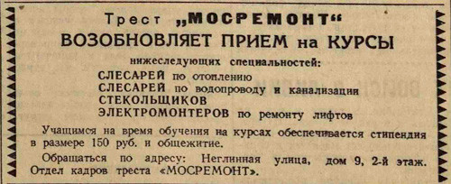 Управление по делам искусств при Моссовете приступило к выявлению всех историко-революционных памятников, которые до сих пор не были на учете. Кроме того, управление выясняет мемориальные здания, связанные с жизнью и деятельностью замечательных людей нашей великой родины.