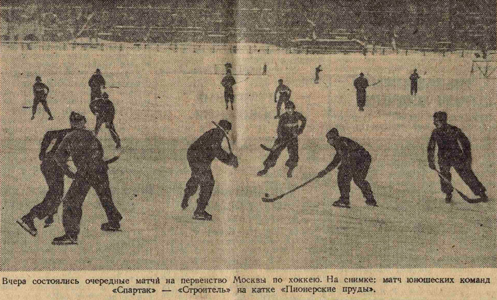 Вчера начался розыгрыш первенства Москвы по хоккею. Центральный матч происходил на катке «Пионерские пруды», где встретились хоккеисты «Спартака» с командой части майора Иванова. Игра привлекла много зрителей, с интересом наблюдавших за ходом матча. Общий счет матча 4:0 в пользу «Спартака».