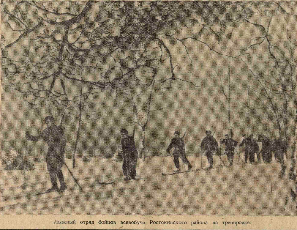 Физкультурники, осовиахимовцы и комсомольцы Молотовского района собрали за один день 200 пар лыж. Всего в районе собрано 789 пар.