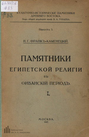 Двухтомник Израиля Франк-Каменецкого российского египтолога и библеиста, о культе бога Амона в фиванский период Египта.