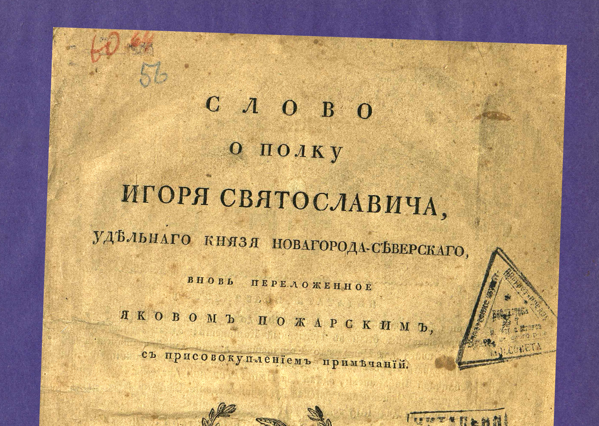 1819Еще одно прозаическое издание «Слова», оцифрованное «Электронекрасовкой», вышло в 1819 году под редакцией писателя и переводчика Якова Пожарского. Пожарский называл свой перевод самым точным по сравнению с первыми изданиями «Слова» и сопроводил текст научными полемическими комментариями отдельных терминов и образов. В издании текст также публикуется в двух колонках на двух языках. За свой перевод Пожарский был избран действительным членом Санкт-Петербургского Вольного общества любителей российской словесности.