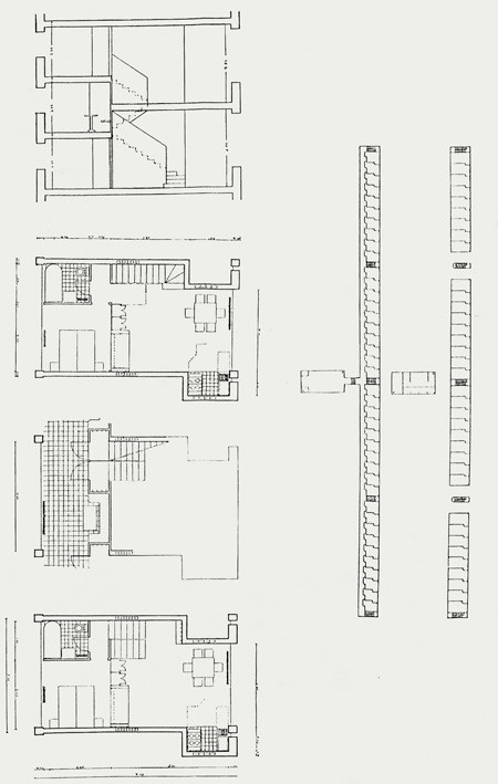 Независимо от того, какой схеме организации отдается предпочтение — горизонтальной (коридор) или вертикальной (лестничная клетка) — в этих проектах, важно то, что жилой блок, обычно представляющий арифметическую сумму самодостаточных частных квартир, трансформируется здесь в синтетический комплекс совместного проживания. Проектирование подобного жилья упростится и общая структура здания станет более гибкой, когда будут ясны функции индивидуальных элементов. Все эти изобретения и реконструкции индивидуальных элементов преследуют общую цель — определить путь, по которому должно развиваться жилье социалистического общества. Это одна из главных задач реконструкции нашей архитектуры.