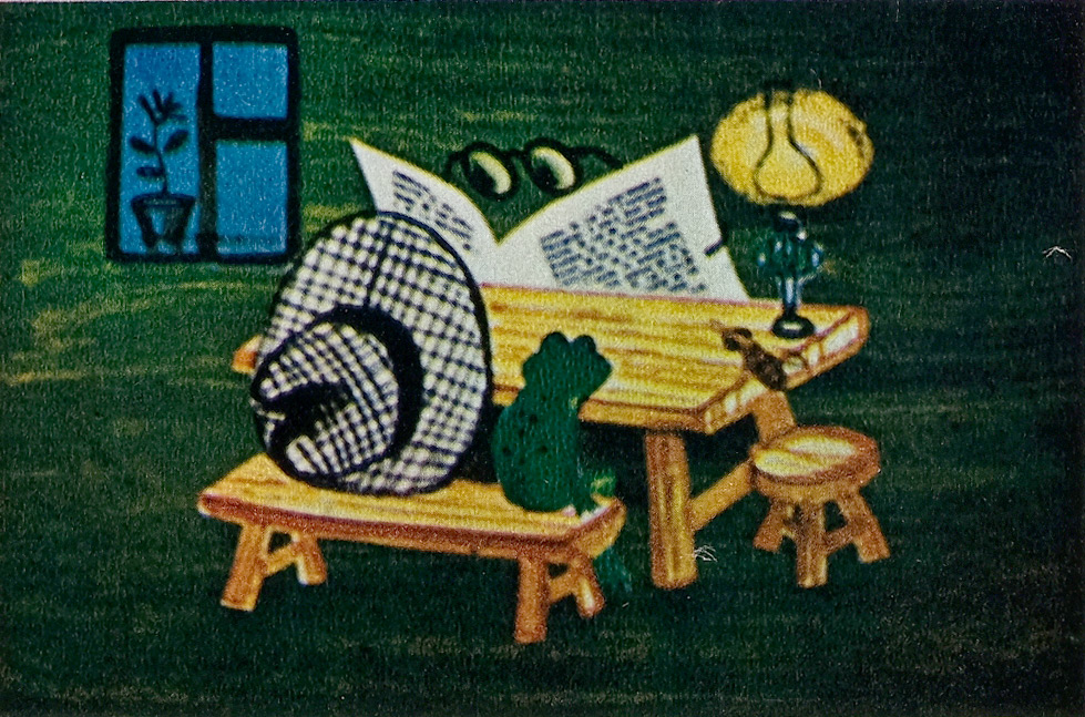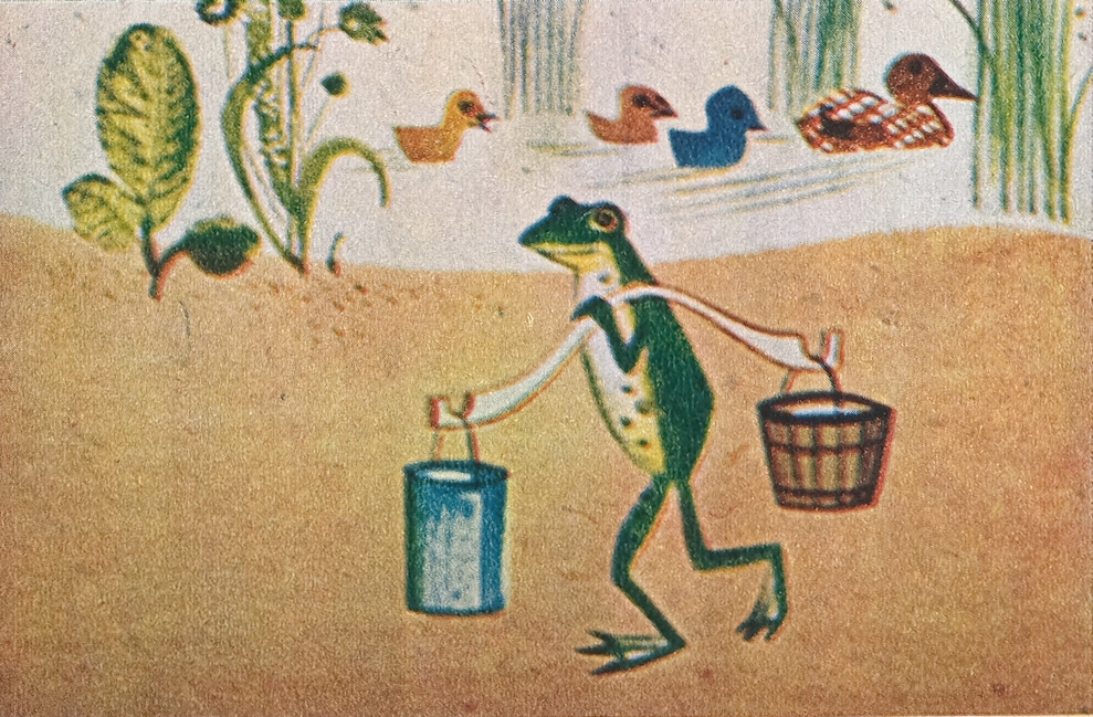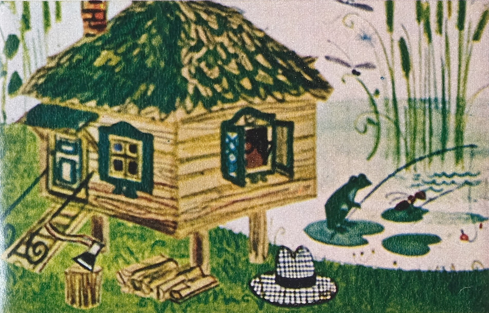 Вдруг по дороге прыгает Лягушка. «Ква-ква, вы откуда и куда?» «Мы от Самовара убежали и идём строить себе домик».