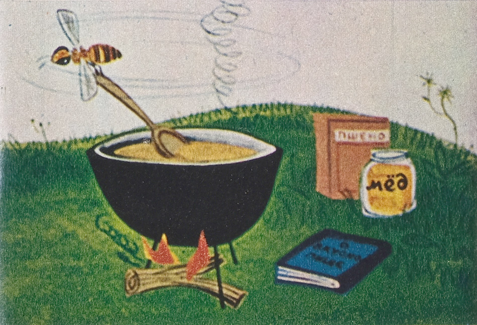 Летит им навстречу Пчела и спрашивает: «Куда путь держите?» «Мы от Самовара убежали и идём строить себе домик. Пойдём с нами».