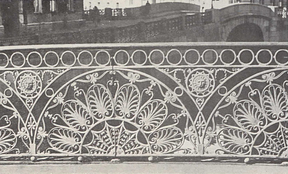 Архитектурные детали мостов были исполнены русскими мастерами литейного дела с почти ювелирной тонкостью и тщательностью. Эти решетки и фонари можно рассматривать часами, любуясь строгим изяществом рисунка, великолепными пропорциями, внимательной проработкой каждой детали. Чугунные мосты пушкинской эпохи — это одна из самых интересных «галерей» того уникального «музея мостов», которым по праву гордится город на Неве.