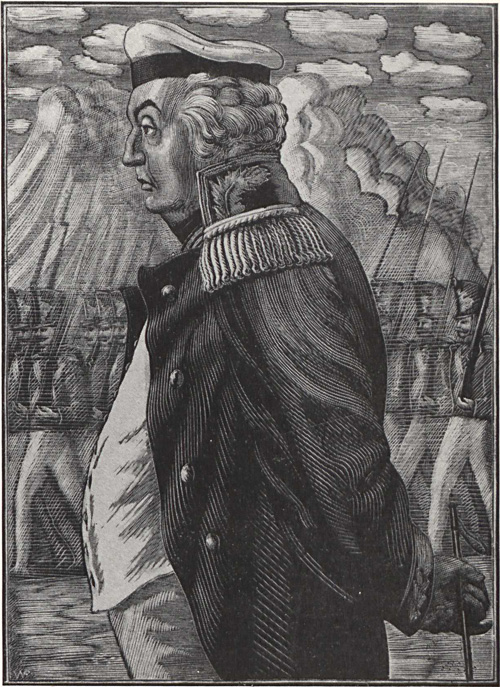 А вот еще гравюра, еще портрет — «Кутузов». Фон его в движении, а он сам стоит впереди, не участвуя в нем, а думает свою думу. Его контуры позволяют ему думать и становиться особенным пространством — еще решение.