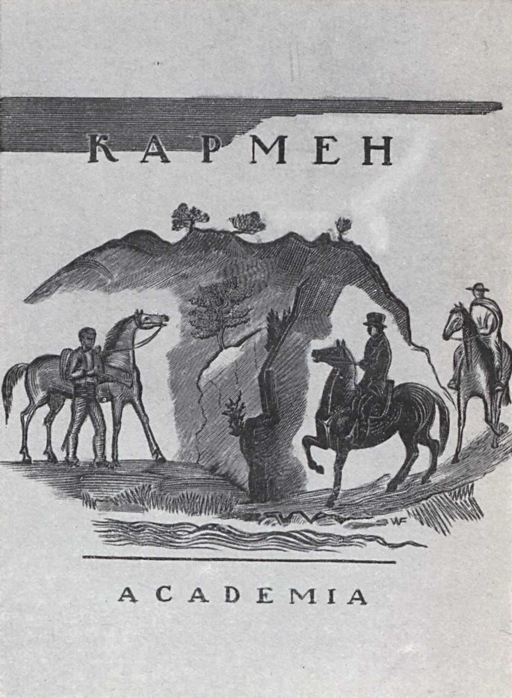 Шмуцтитул к «Кармен» П. Мериме. 1927. Симметричная композиция