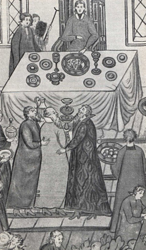 Стол Алексея Михайловича в Грановитой палате Московского Кремля. Рисунок из книги «Книги избрания на царство царя Алексея Михайловича»