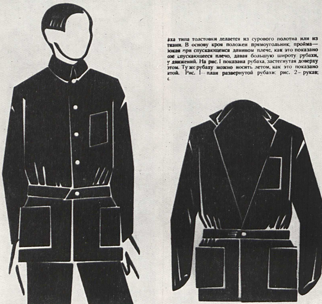 Фрагмент из альбома «Искусство в быту». 1925. Мужская куртка типа толстовки. Модель Н. Ламановой и В. Мухиной.