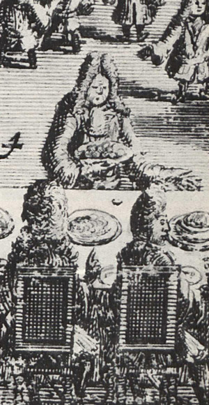 А. Зубов. Свадьба Петра и Екатерины в Меншиковском дворце в Петербурге. Гравюра на меди. 1714. Фрагмент