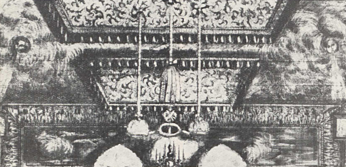 Потолок в Лефортовском дворца в Москве. Фрагмент гравюры А. Схонебека. 1721