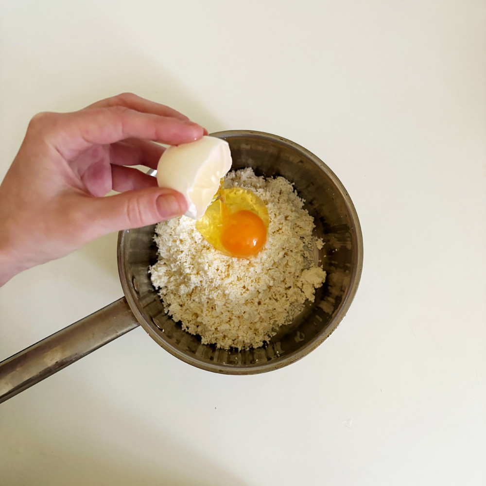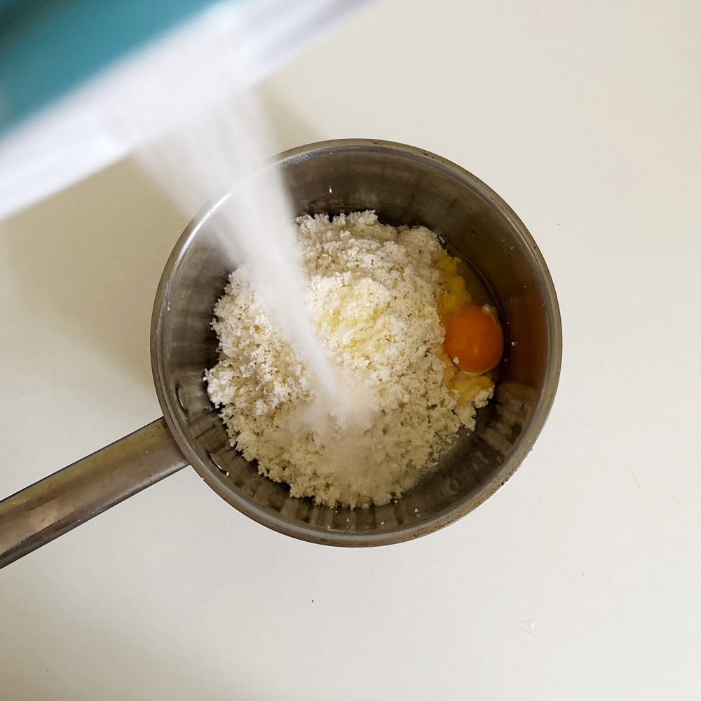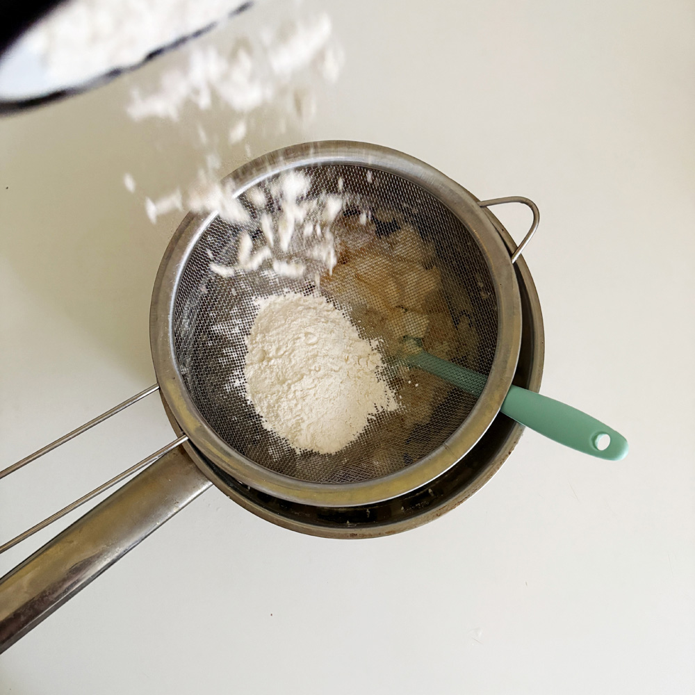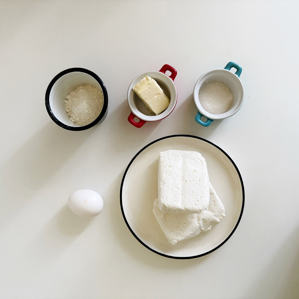 750–800 г творога, 175 г муки (в том числе 50 г для панирования), 3 яйца, 3 ст. ложки масла сливочного, 2 ст. ложки сахарного песку, 5 г соли, 100 г жира для обжаривания, 2–3 ст. ложки сахарной пудры.
