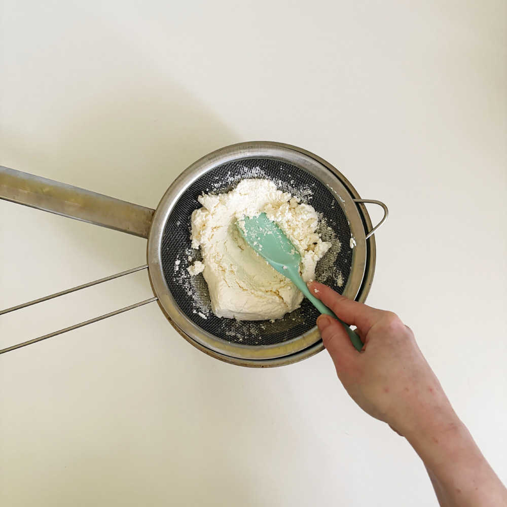 Творог протереть через сито или провернуть через мясорубку.