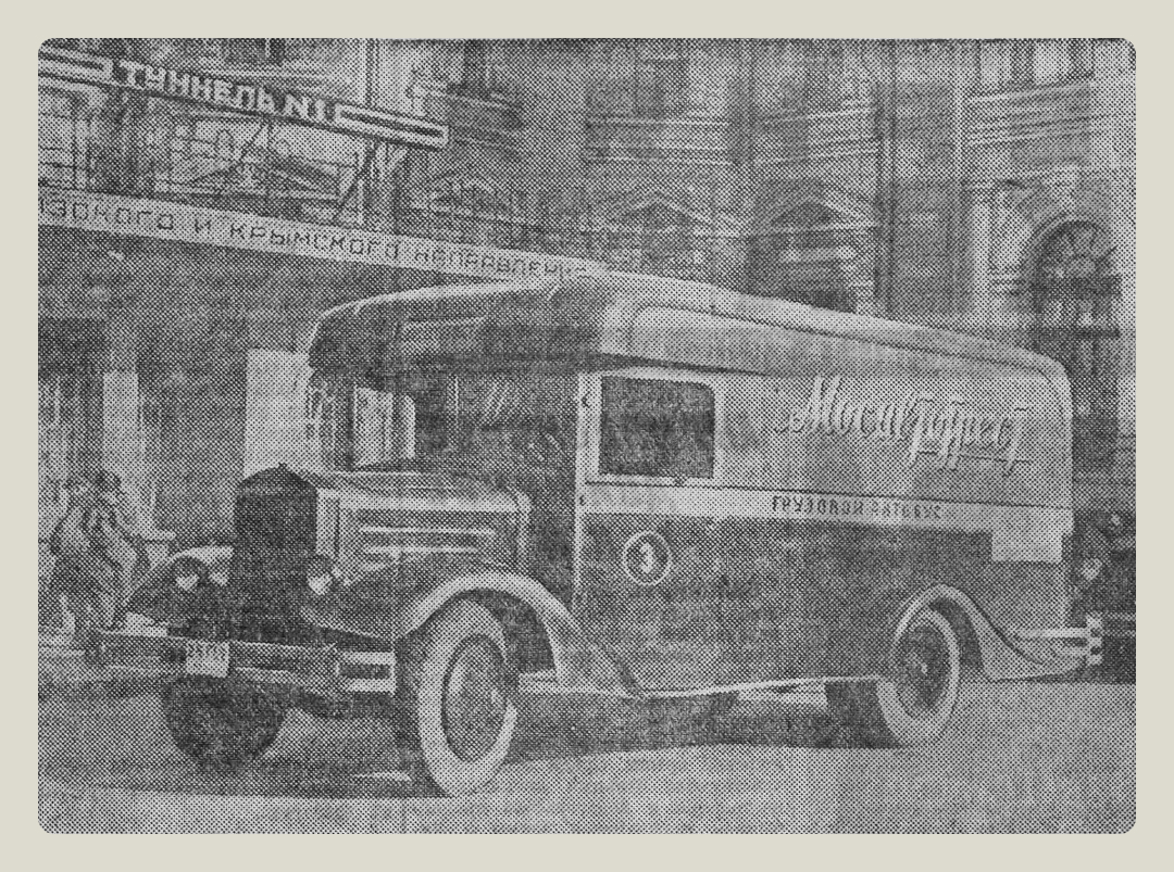 Мосавтотрестом организована перевозка с вокзала на вокзал пассажиров с вещами в специальных грузовых автобусах. На фото: грузовой автобус у Курского вокзала.