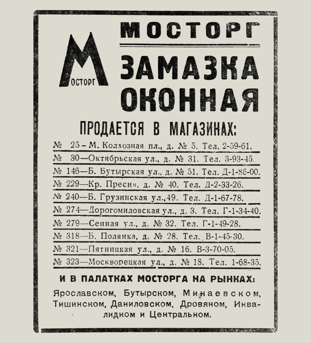 Сегодня хроника московского быта с 10 по 16 октября 1936 года. На этой неделе: открываются магазины, отделанные мрамором, в которых будет продаваться только керосин; на Сретенке открыта лечебная столовая; на площадях устанавливают световую рекламу и большие экраны; на улицах 100 лотошниц будут торговать бутербродами с колбасой и мясом; для москвичей завезли 10000 лимонных деревьев и пальм.