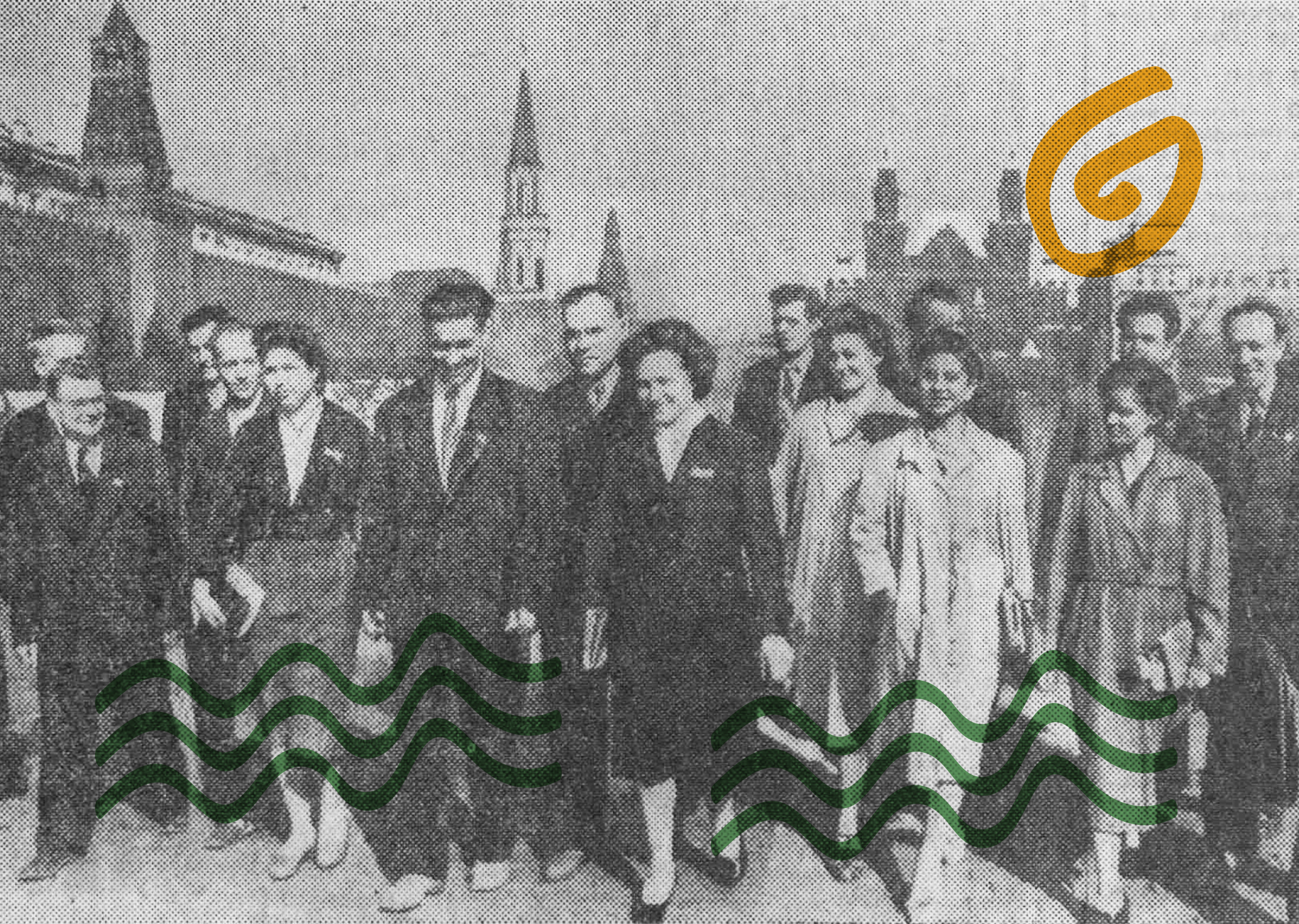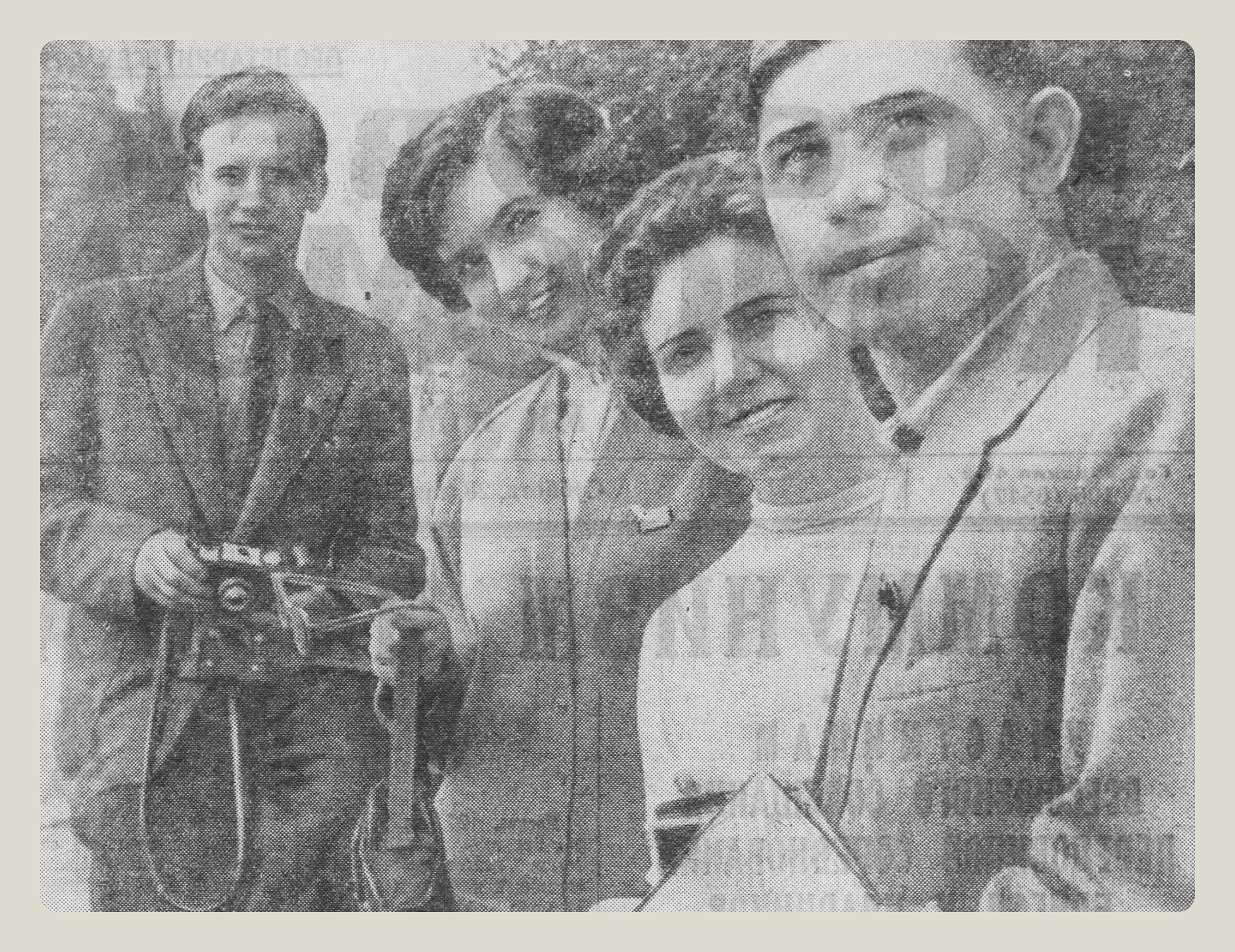 Участники Всесоюзного совещания передовиков соревнования за звание бригад и ударников коммунистического труда в Москве. На снимке — бригадир строителей из Витебска Пётр Блохин, токарь из Бухары Валентина Фаустова, экскаваторщица из Самарканда Наташа Роговая и токарь из Боровичей Борис Никифоров знакомятся со столицей.