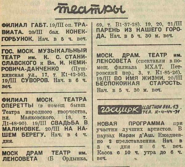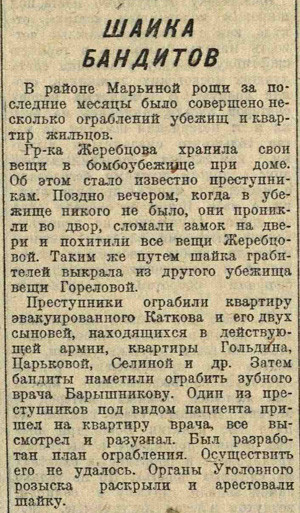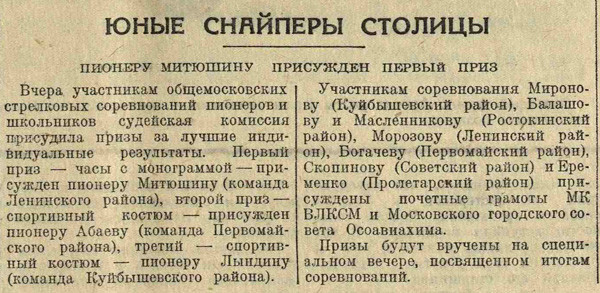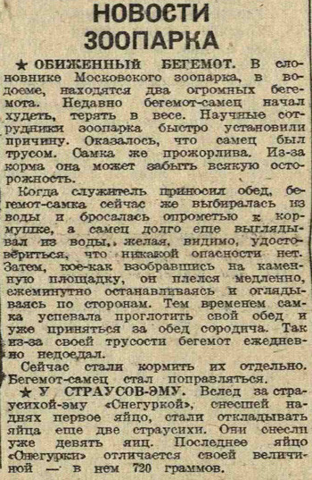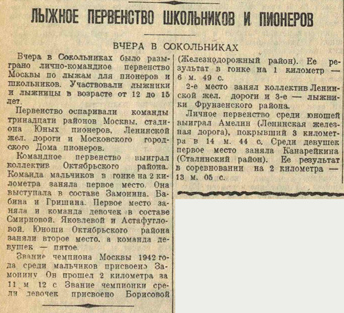 Раз в неделю Электронекрасовка рассказывает о событиях, произошедших в Москве и жизни москвичей в разные годы, основываясь на газетных и журнальных заметках и дневниковых записях. Представляем хронику быта с 12 по 18 марта 1942 года. На этой неделе: прошли общемосковские стрелковые соревнования среди школьников; москвичи собирают и отправляют теплые вещи на фронт; на Тверской, площади Пушкина и Маяковского установлены мигающие маяки для водителей; при школах открывают огороды; участились домовые кражи; в московском зоопарке бегемот-самец начал терять вес из-за слишком активной самки.