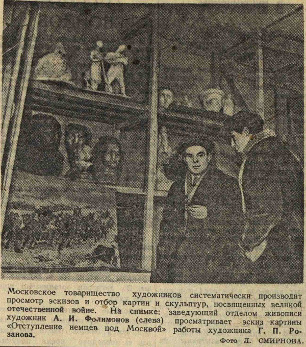 Встретился в «Дружных ребятах» с Володей Черненовым, его отпустили в запас. Опухшее от голода и больного сердца лицо. Он считался все это время в нестроевиках, числился в рабочем или восстановительном батальоне и все время рисовал. Рассказывал, как внезапно умер Игорь [Поляков]. Завтра должны в «Дружных ребятах» давать работу. Номер как будто бы будет посвящен героическому Ленинграду.