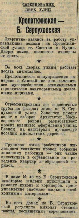 Раз в неделю Электронекрасовка рассказывает о событиях, произошедших в Москве и жизни москвичей в разные годы, основываясь на газетных и журнальных заметках и дневниковых записях. Представляем хронику быта с 2 по 8 апреля 1941 года. На этой неделе: в столице началась декада таджикского искусства; на Тверской передвигают дома; на улицах начал курсировать экспериментальный автобус, работающий на торфе и дровах; жители Пречистенки и Большой Серпуховской соревнуются, чья улица лучше; Парк Горького готовится высадить 1 400 000 цветов.