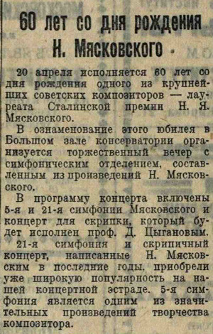 Вчера был на концерте произведений сталинских лауреатов — 6ая симфония Шостаковича, «Песня о Сталине» Хачатуряна, 21ая симфония Мясковского — я был довольно усталым и клевал носом. Видел Митьку — он рассказывал, как он «avec ses cousins Miller s’occupait de spiritisme et au lieu de faire tourner la table, on pelotait sa voisine». В школе — ничего нового. Вышла неприятность с преподавателем литературы — он читал отрывок из «Евг. Онегина», скандируя его в ритме вальса, — тут я сказал, что это более похоже на шарманку, он обиделся за свои способности чтеца и сказал, что я пошло острю, и попросил помолчать. Ну и фиг с ним — подумаешь. Этот тип сам говорил на уроке, что «лимбургский сыр имеет запах портянки» — и он не внушает мне больше никакого уважения. Кончил книгу Валери — она тоже очень нравится Митьке. Конечно, всё это немного абстрактно, но чрезвычайно характерно для эпохи и необычайно умно. Сейчас — 4 ч. 30 минут. Начну заниматься. Думаю скоро пойти в кино — давненько не был. Купил у Митьки книгу о Nietzche с точки зрения марксизма — это нужная для меня и полезная книга.