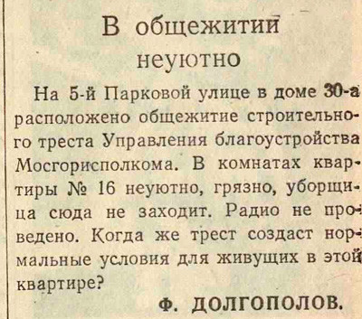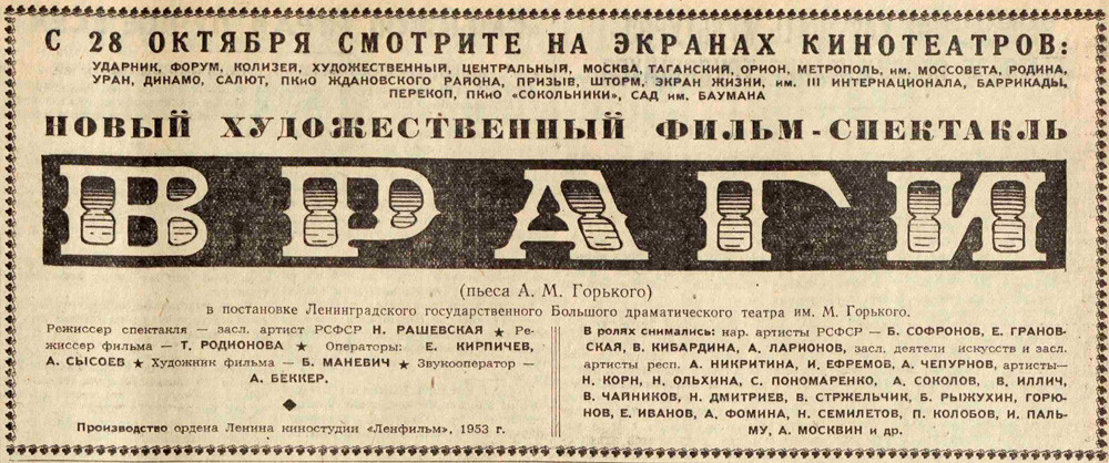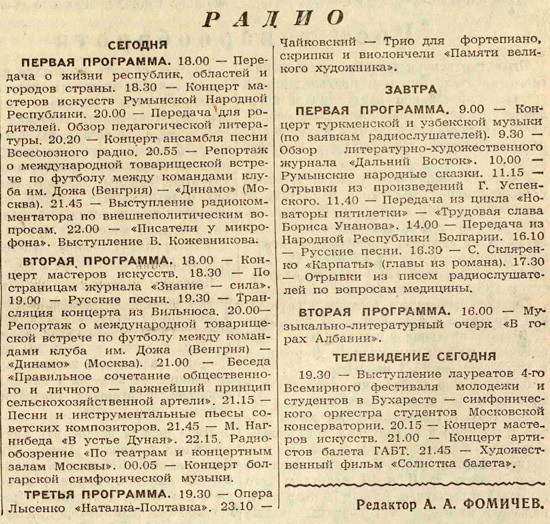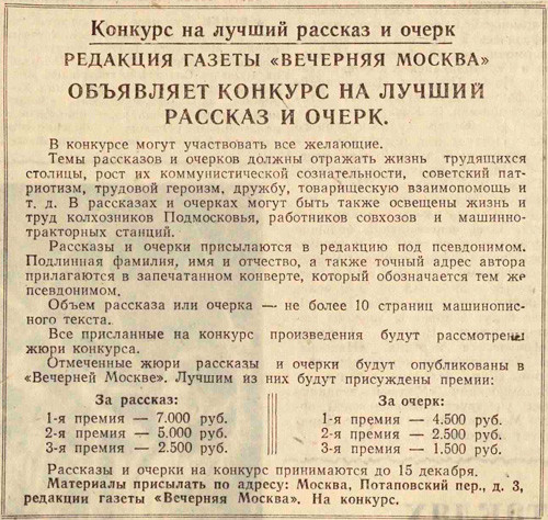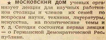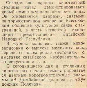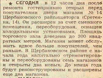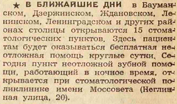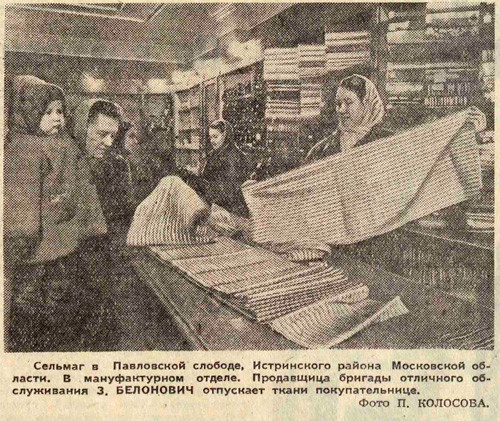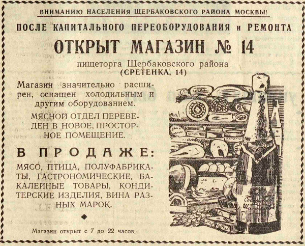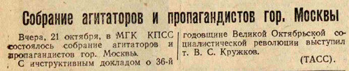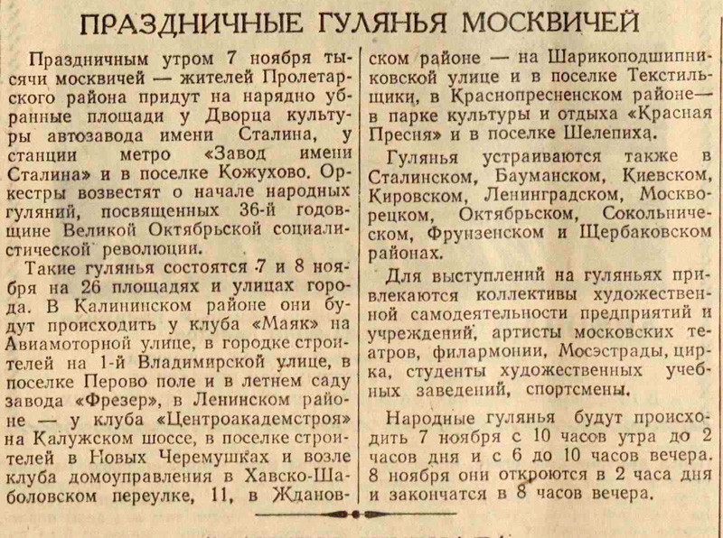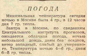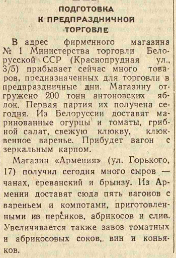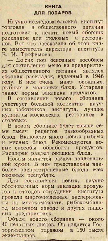 Раз в неделю «Электронекрасовка» рассказывает о событиях, произошедших в Москве и жизни москвичей в разные годы, основываясь на газетных и журнальных заметках и дневниковых записях. Представляем хронику быта с 22 по 28 октября 1953 года. На этой неделе: завершилось собрание московских агитаторов и пропагандистов; к ноябрьским праздникам из Белоруссии прибыло 200 тонн яблок «Антоновка»; вышел «Краткий телефонный справочник» Москвы; НИИ торговли и общественного питания подготовил новый сборник раскладок для столовых и ресторанов; театр Моссовета срочно ищет комнаты для артистов; за 25 дней октября москвичи купили около тысячи автомобилей; к празднику магазин «Сыр» на Тверской расширяет ассортимент, в продажу поступают сыры с шоколадом, лимоном и апельсином; в Москве прошёл конкурс на лучшее исполнение произведений Владимира Маяковского.
