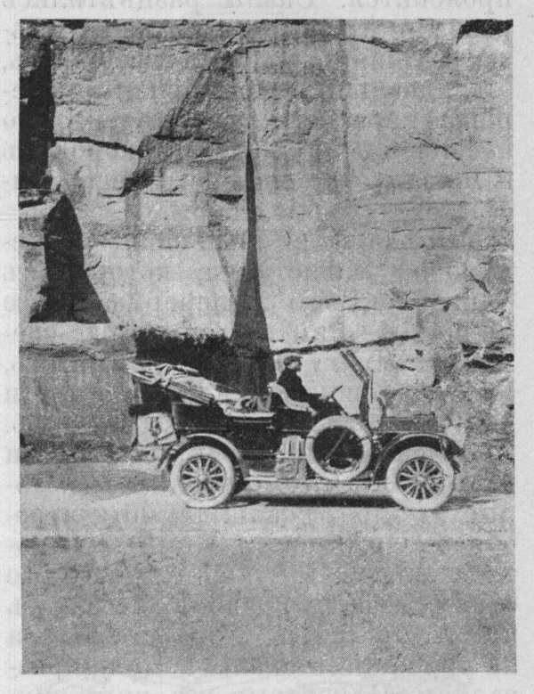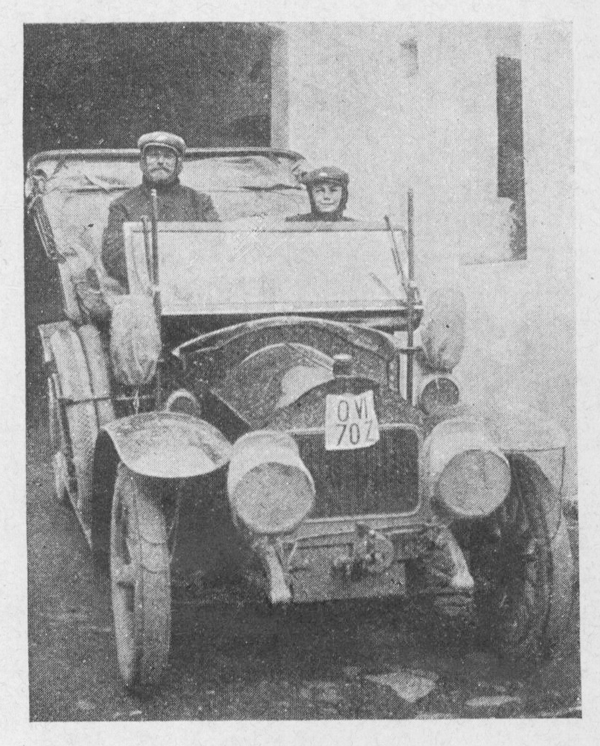 «Павел Энгельмейер с сыном Володей на автомобиле Даррак 18–22 силы № 17014, приспособленном для большого туризма и забрызганном грязью».