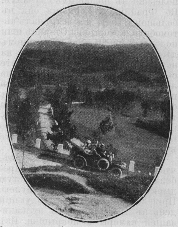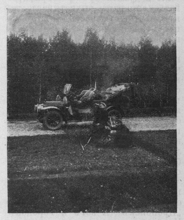 «Крушение под г. Юхновым 20-го сентября 1908. След автомобиля № 17014, съехавшего задом под откос шоссе».