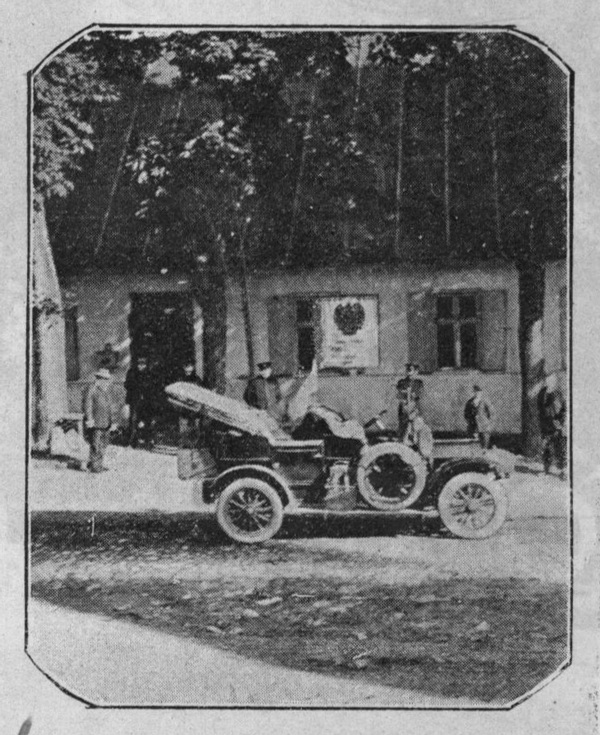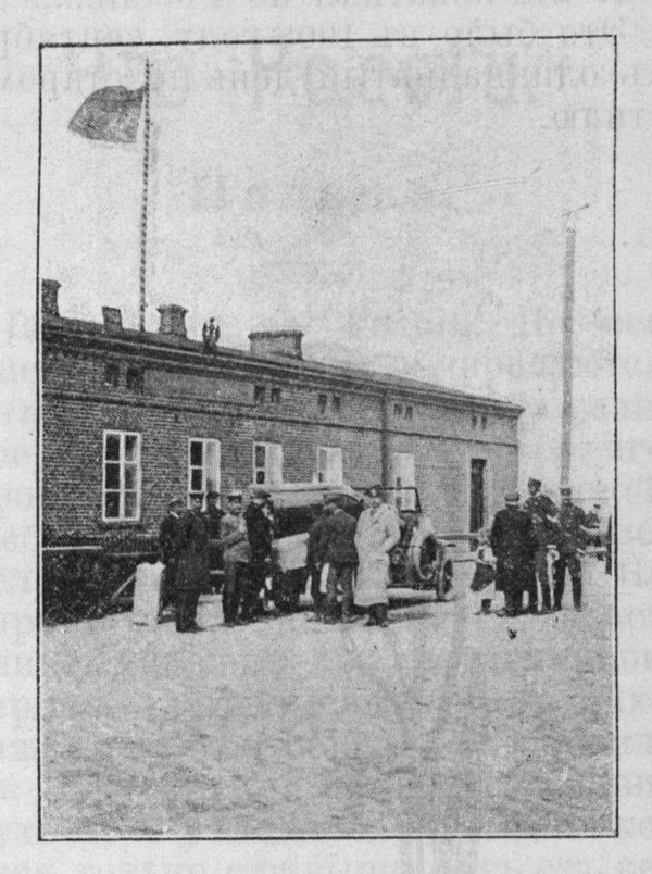 «Русская Щипиорнская таможня. При въезде весь багаж снимается и перерывается, то есть досматривается, все ящики и баки на автомобиле также. Запасные шины вешаются. За автомобиль платится 220 р. независимо от его величины, за запасные шины платится по 12 р. за пуд».