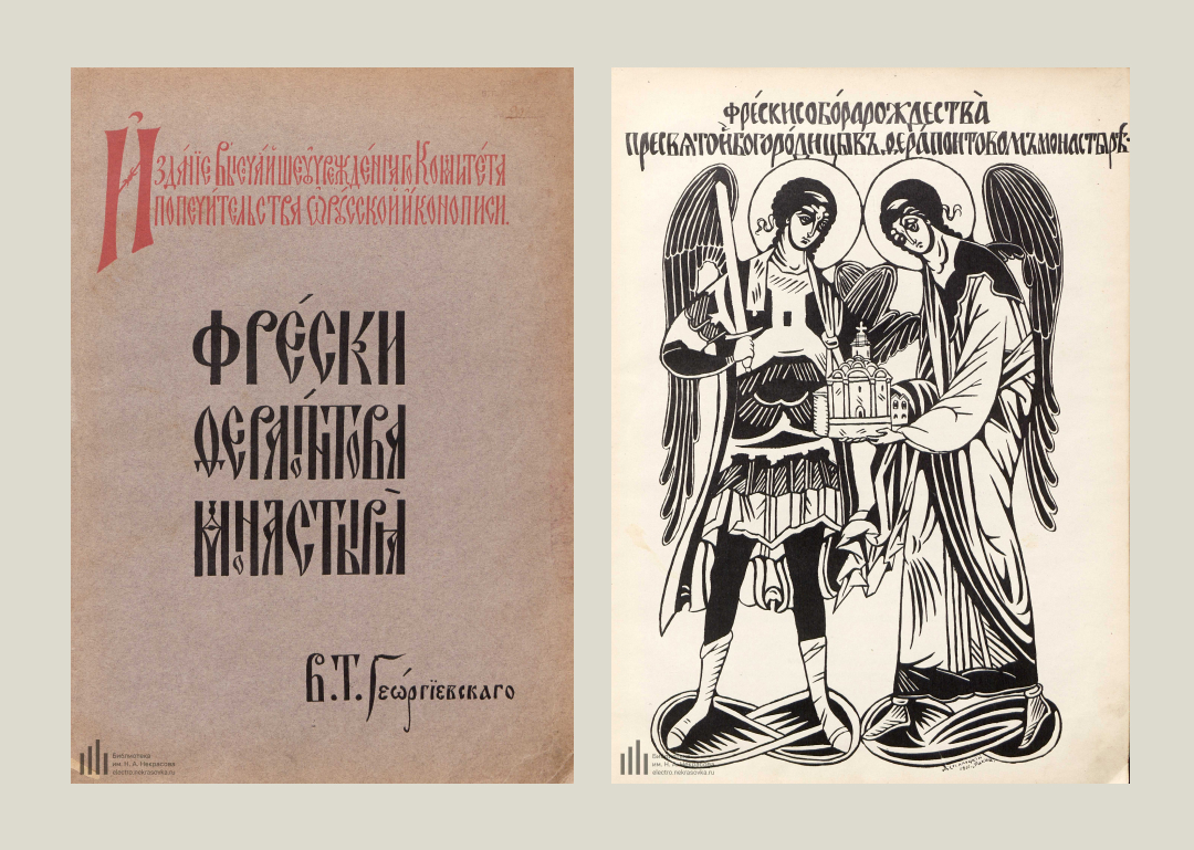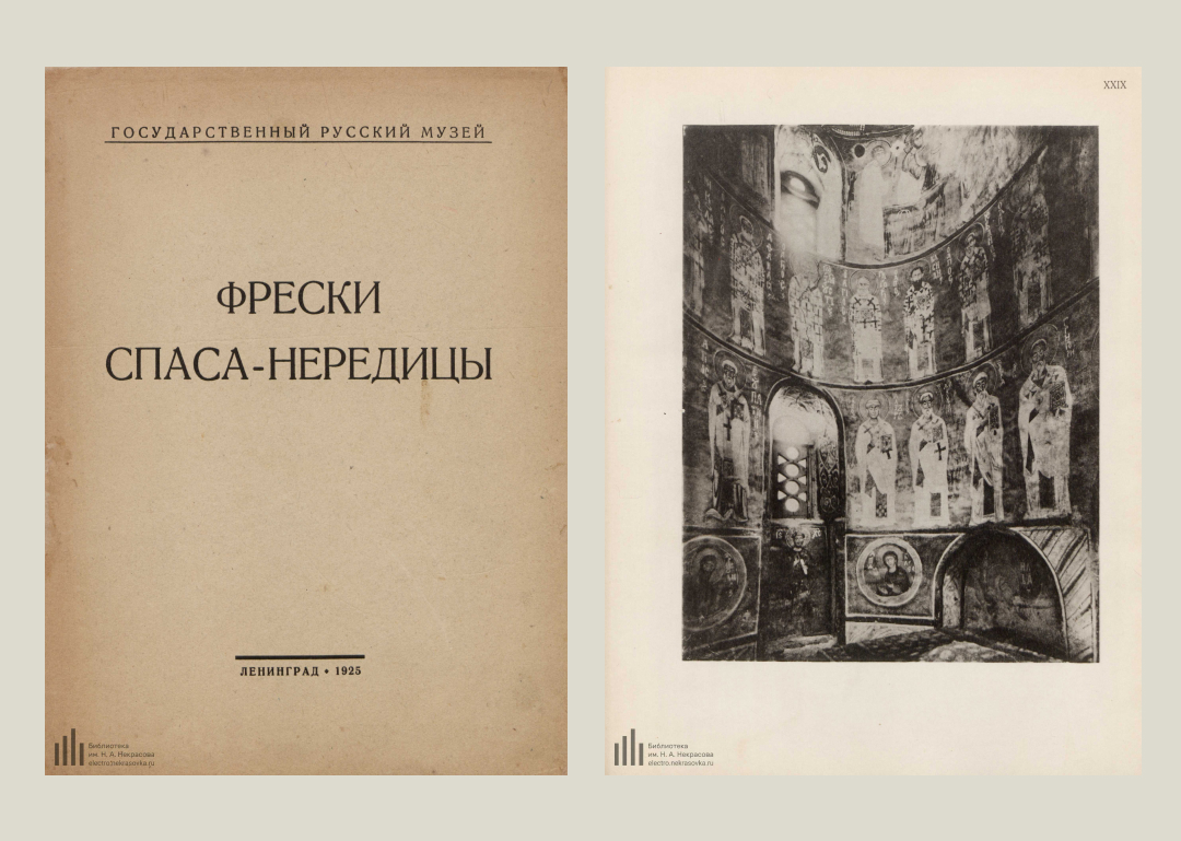 Книга «Фрески Спаса-Нередицы», изданная в 1925 году, посвящена уникальному комплексу фресок церкви Спаса на Нередице около Великого Новгорода, построенной в 1198 году и, увы, разрушенной во время Великой Отечественной войны.