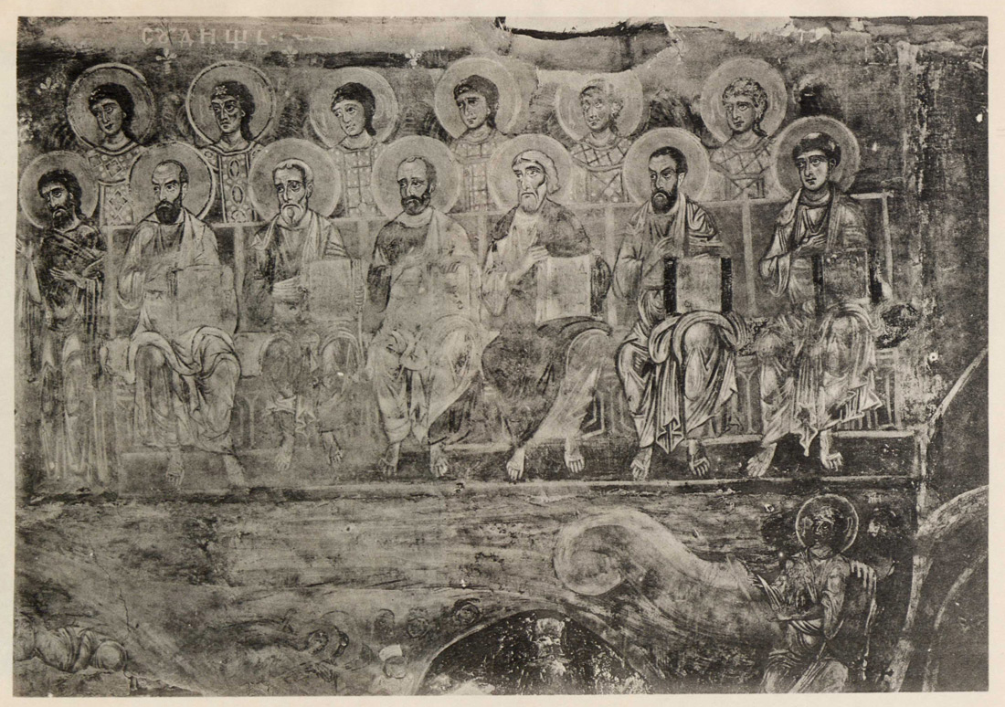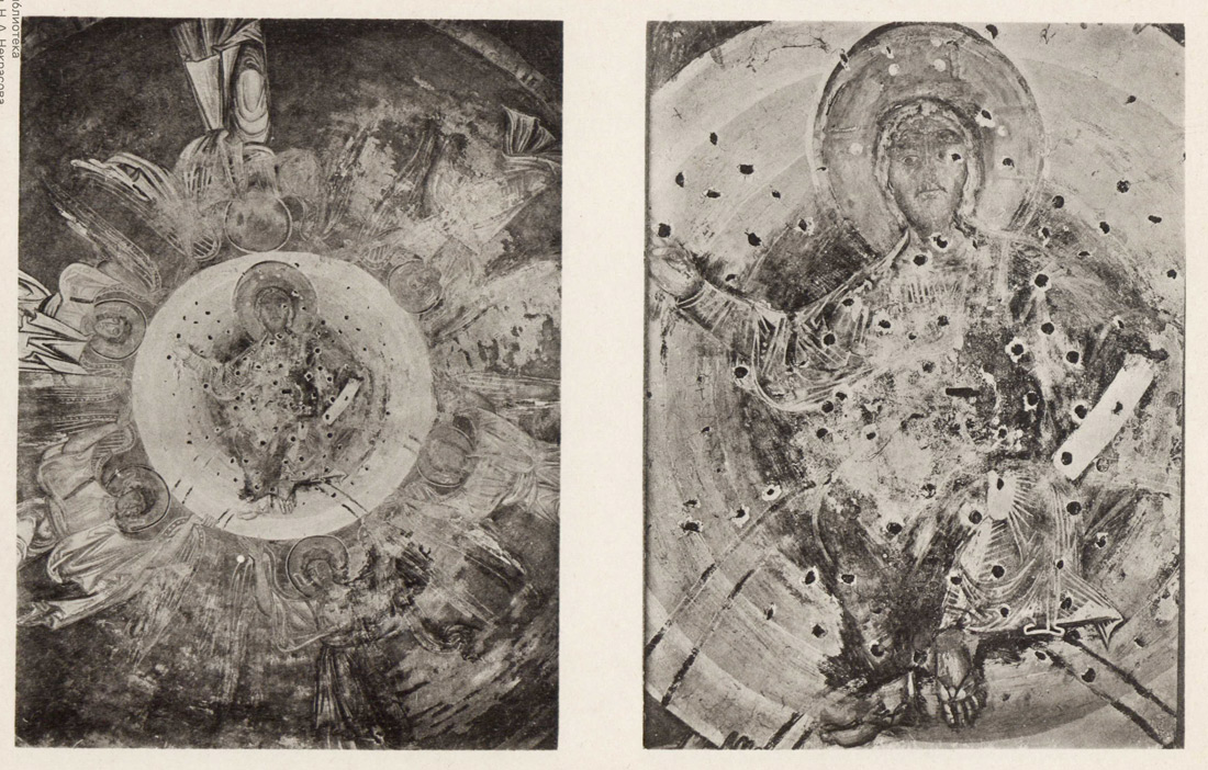 Таковы течения, которые отразились на архитектуре Нередицкой церкви. Если обратиться теперь к её росписи, то разнообразные влияния, вскрываемые последней, оказываются ещё более поразительными. Нередицкая церковь сплошь расписана фресками сверху донизу. Этим она коренным образом отличается от собственно византийских храмов».