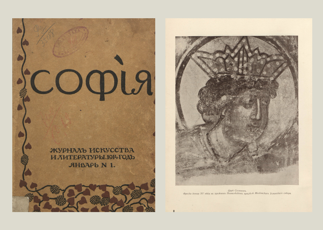 В 1914 году издатель Константин Некрасов (племянник Н.А. Некрасова) и писатель Павел Муратов начинают издавать журнал «София», главной целью которого было пробуждение интереса читателей к древнерусскому искусству, архитектуре и литературе.