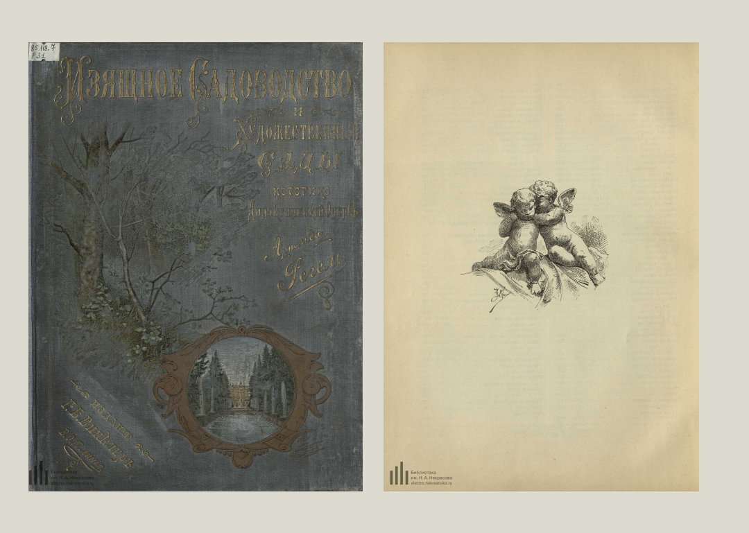 Монументальная книга «Изящное садоводство и художественные сады» Артура Регеля, садовода и директора Петербургского ботанического сада, где учёный обобщил и систематизировал историю римских, классических и восточных парков и садов, а также разработал практические рекомендации по садоводству и архитектуре ландшафта. Большая часть книги посвящена истории российских парков с перечислением их особенностей.