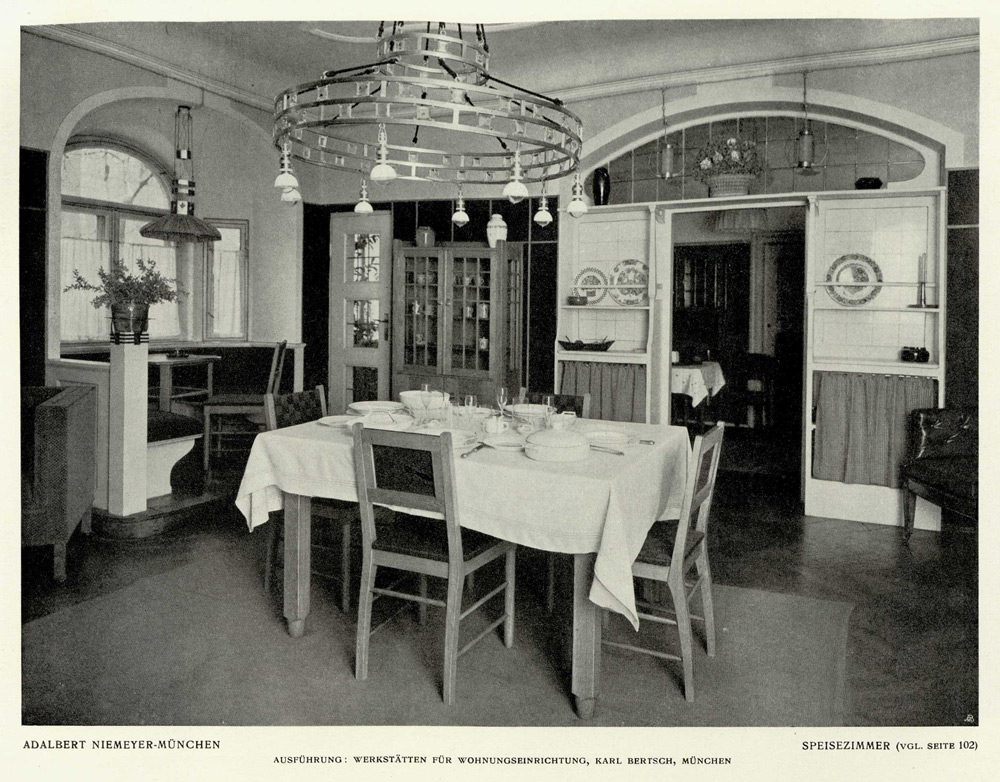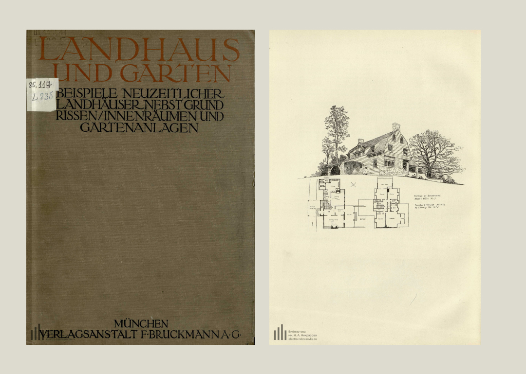 Примеры «современных» загородных домов, планировок, интерьеров и садов образца 1907 года можно найти в книге Landhaus und Garten (Загородный дом и сад).