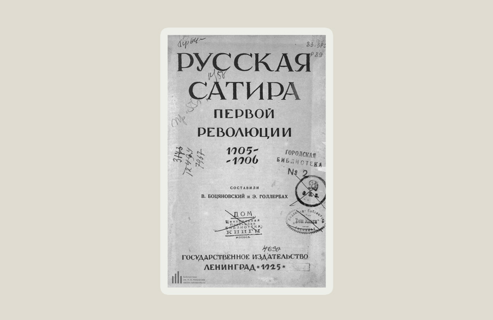 «Русская сатира первой революции: 1905–1906». 1925 годВ этом очерке Эрих Голлербах прослеживает историю русского юмористического рисунка до 1905 года и находит корни революционной карикатуры; описывает ее стиль и особенности, выделяет наиболее значимых художников и самые популярные приемы — с приведением конкретных примеров и искусствоведческим анализом.