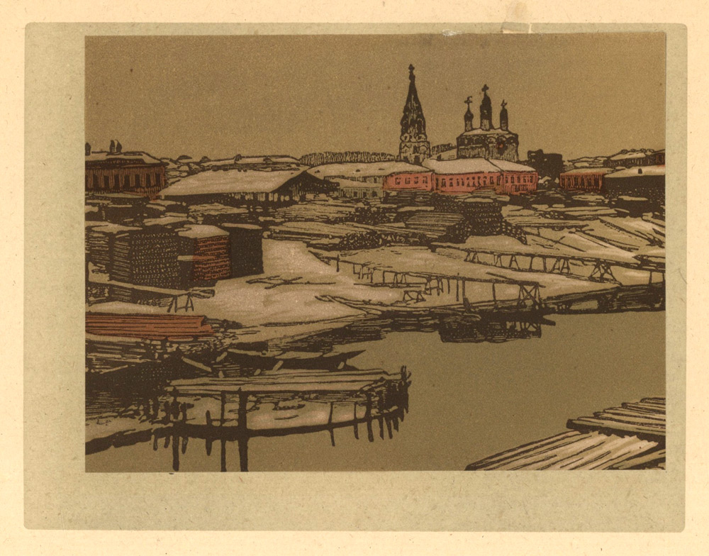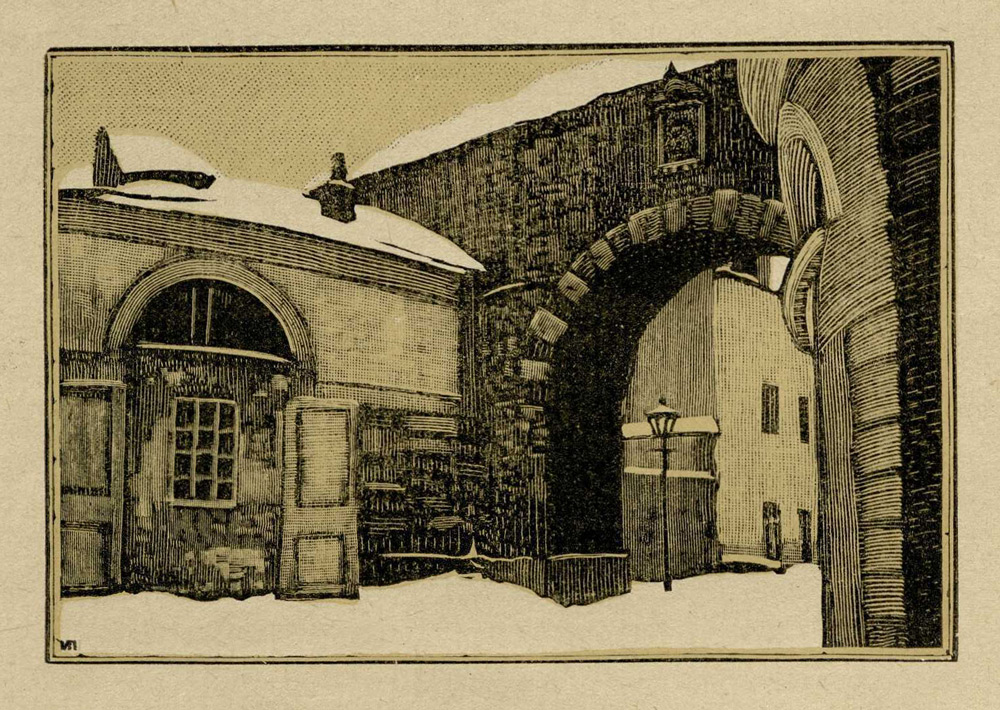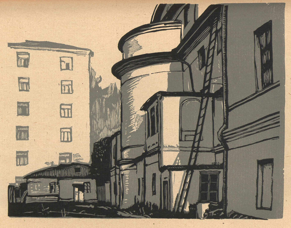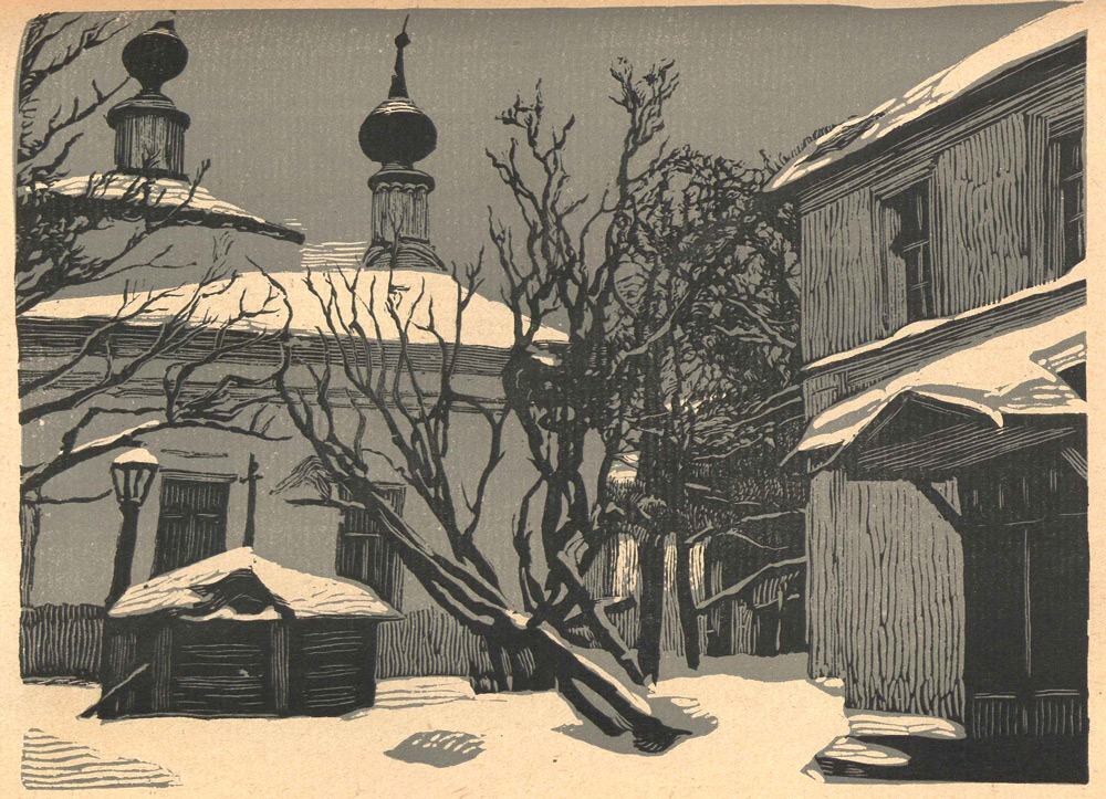 1925 годСерия линогравюр Ивана Павлова, посвящённая московским дворам, с вступительной статьёй искусствоведа Владимира Адарюкова.
