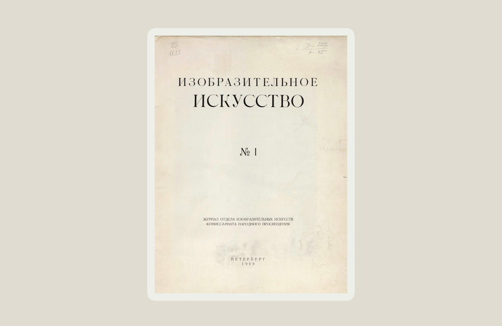 Журнал «Изобразительное искусство», № 1. 1919Почему «научные художественные музееведы» не признают искусство новаторов и что является основой музея? В статье Малевич объявляет войну академизму и призывает к созданию «революционного коллектива по проведению реформ» в сфере искусства.