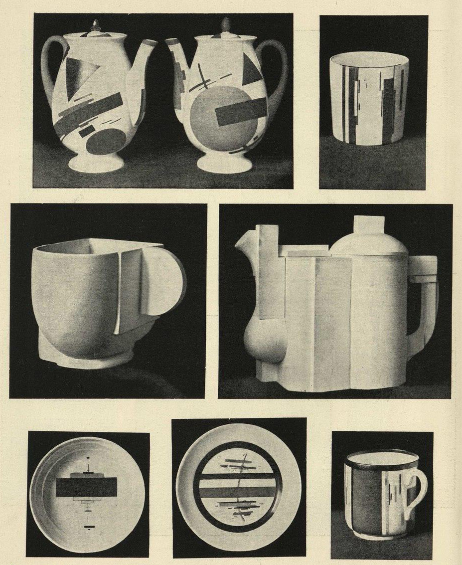 О супрематистах: «Они не ограничиваются применением супрематистской живописи к росписи старого фарфора, но создают также и новые формы вещей, с целью связать живопись и форму в одно художественное целое».