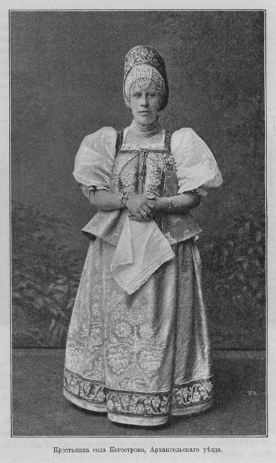 Энгельгардт о поморах: «Съ ранней весны всѣ мужчины уходятъ на далекіе промыслы и дома остаются только старики, дѣти и женщины. Женщины завѣдуютъ всѣмъ домашнимъ хозяйствомъ, занимаются мѣстными промыслами, исполняютъ обязанности ямщиковъ, гребцовъ и нерѣдко несутъ за своихъ мужей и братьевъ общественную службу, которую, нужно отдать имъ справедливость, выполняютъ вполнѣ добросовѣстно и исправно. Въ общемъ, поморы народъ гостепріимный, коренастый, здоровый; лица у нихъ широкія и вѣчно красныя, такъ какъ большую часть года они проводятъ на воздухѣ, на морѣ. Лѣтомъ мужчины носятъ картузы, пиджаки и кожаные сапоги, а во время промысла бахилы и норвежскія куртки-фуфайки, зимою — валенки и тулупы. Женщины ходятъ въ цвѣтныхъ яркихъ сарафанахъ. Избы большею частью просторныя и довольно опрятныя. Въ каждомъ домѣ найдется самоваръ, чайная и столовая посуда. Главный промыселъ, который питаетъ поморское населеніе, это мурманскій рыбный промыселъ».