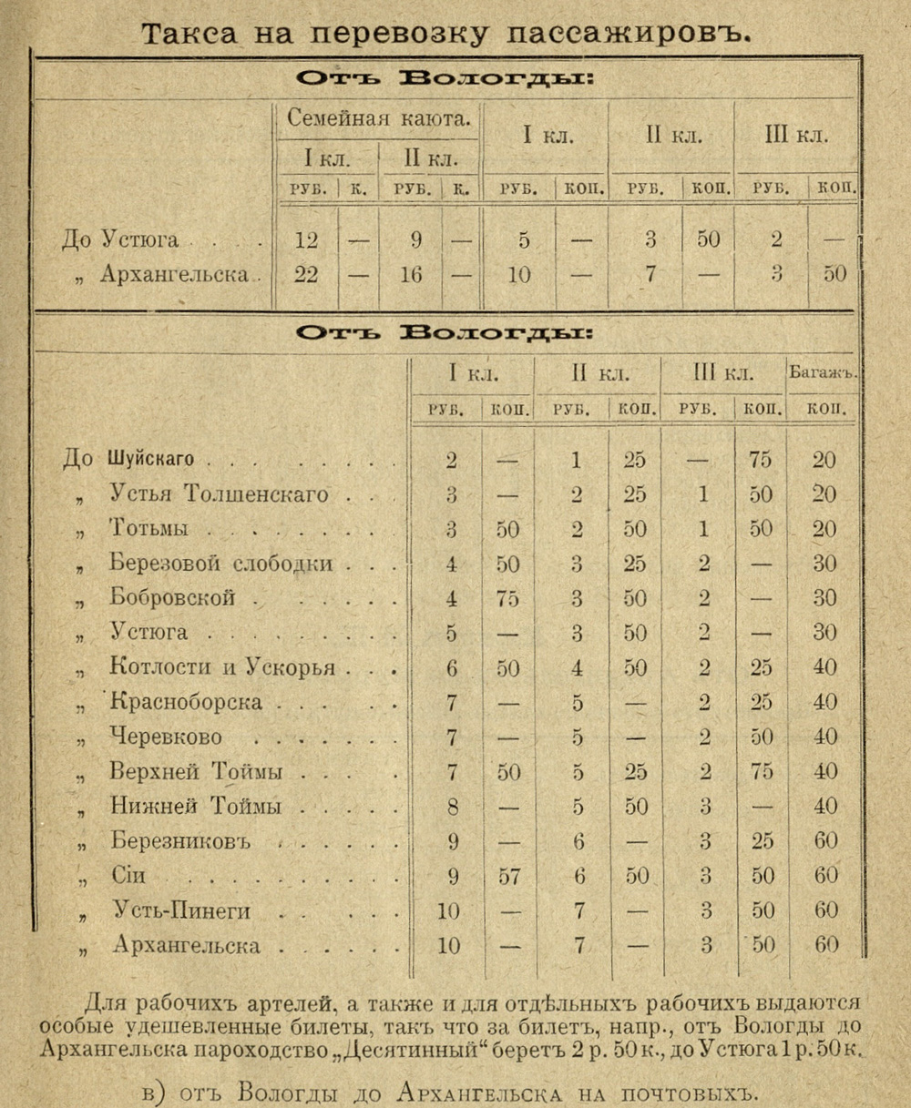 «На нашемъ пароходѣ любезенъ не только капитанъ, но и остальные служащіе. Какое-то легкое, жизнерадостное настроеніе характеризуетъ всѣхъ ихъ. Въ особенности такимъ свѣтлымъ состояніемъ духа отличался нашъ буфетчикъ. Это былъ довольно молодой еще человѣкъ. Какъ онъ мнѣ сообщилъ, онъ служилъ прежде въ Петербургѣ въ ресторанныхъ гарсонахъ. Много выпивалъ, особенно пива. Потомъ, наживши деньжонокъ и желая поправить свое пропитое здоровье, онъ основался теперь здѣсь, на скромной „Лузѣ“».