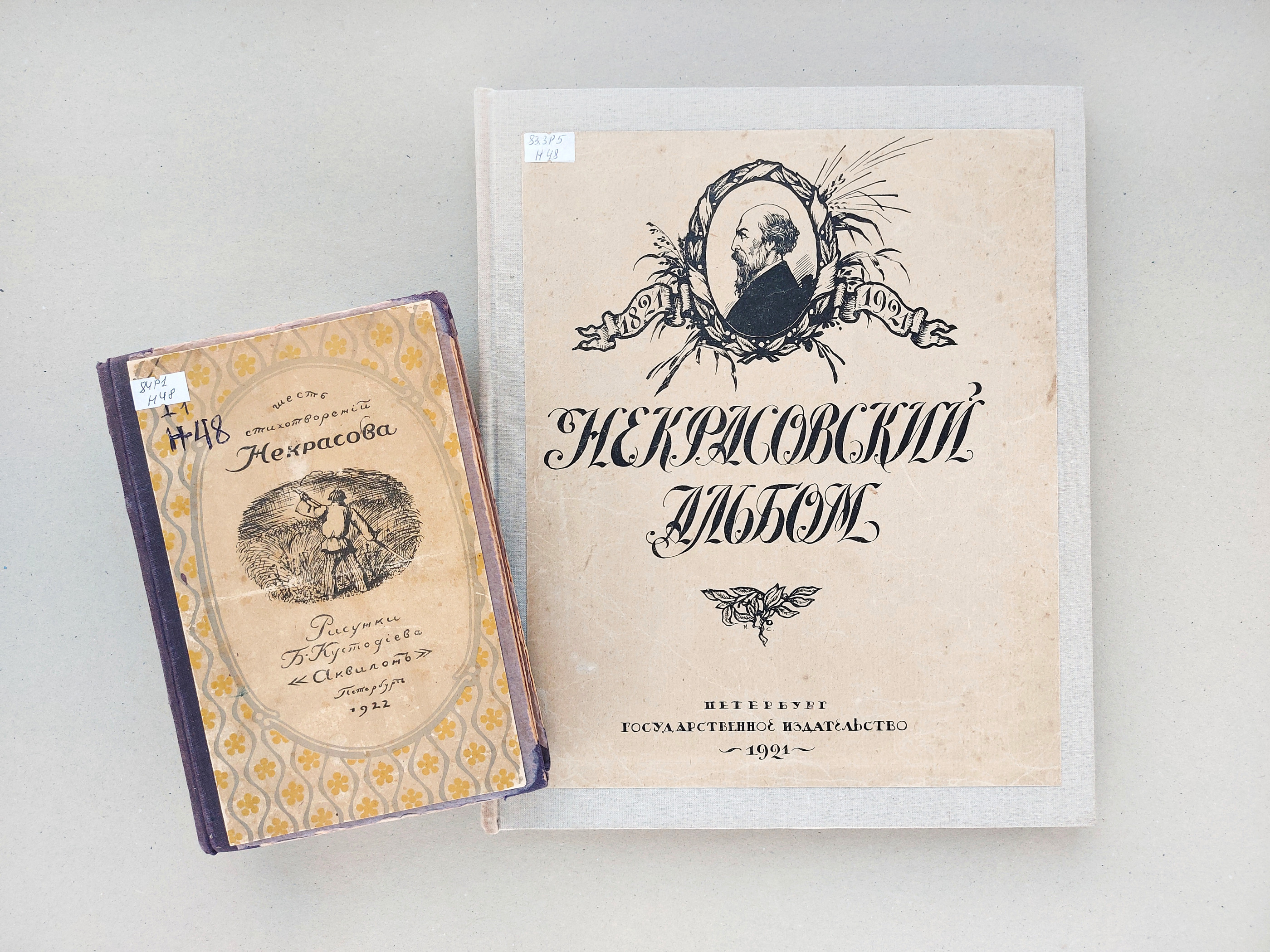 Обложку «Некрасовского альбома» оформил график Иван Симаков, не только художник книги, но и автор плакатов, например: «Да здравствует неразрывный железный Союз рабочего класса с крестьянством!», «Все на заготовку дров!..», «Да здравствует пролетарский праздник 1-ое мая».