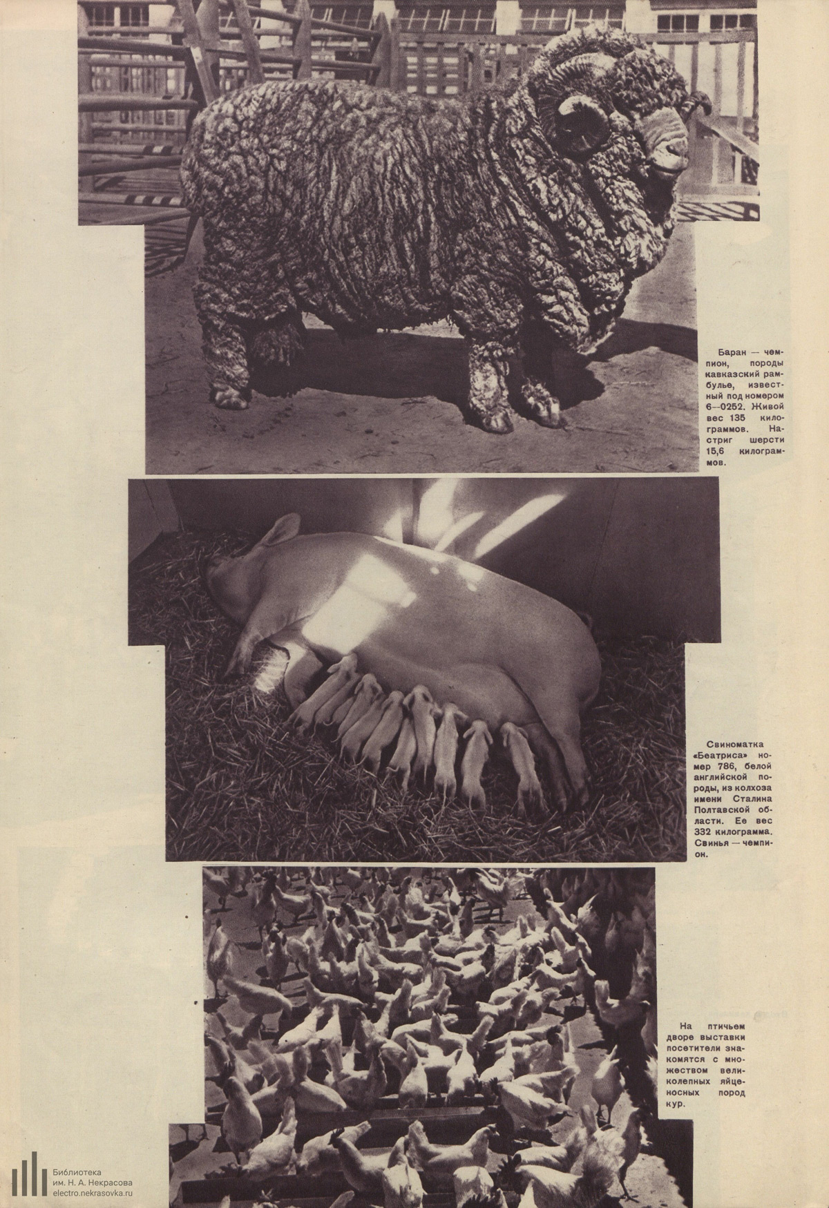 1939 годСентябрьский номер фотожурнала «СССР на стройке» за 1939 год посвящён открытой Всесоюзной сельскохозяйственной выставке. Фоторепортаж Георгия Петрусова зафиксировал архитектуру, экспонаты и посетителей. Оформили журнал художники Александр Родченко и Варвара Степанова.
