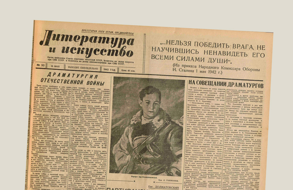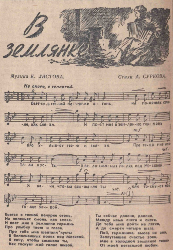 Первая публикация песни Константина Листова и Алексея Суркова «В землянке». «Комсомольская правда» № 70 за 1942 год