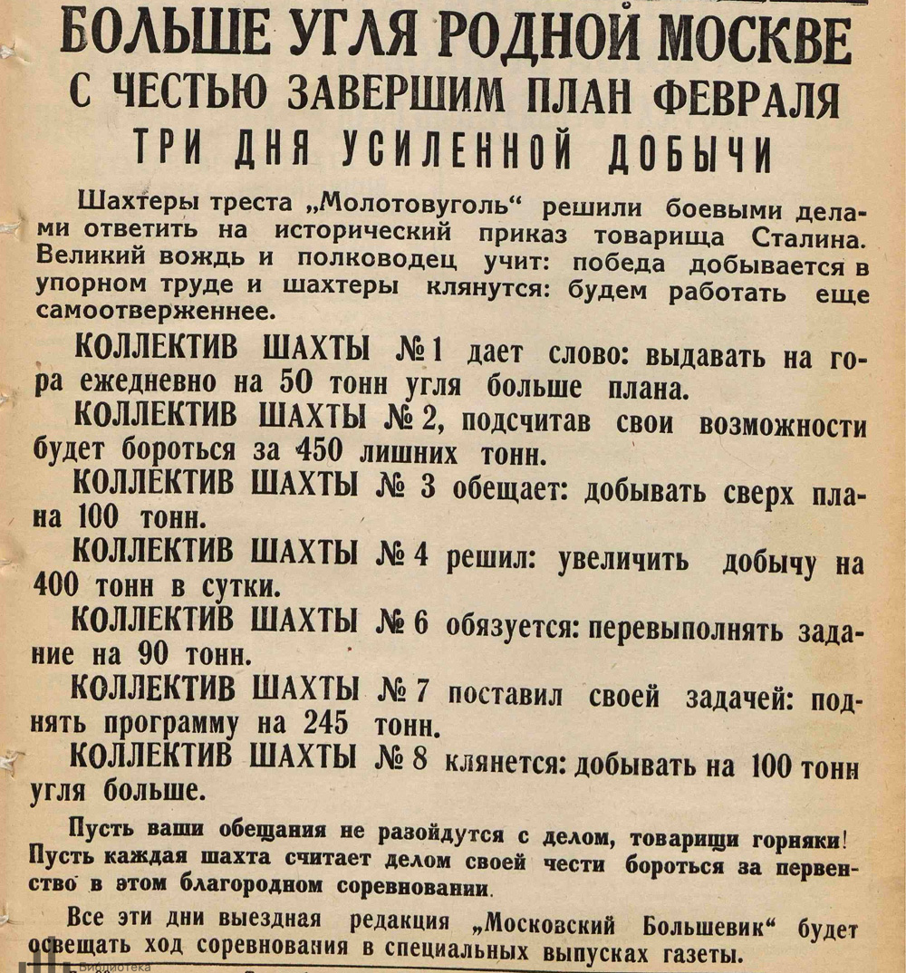 «Больше угля родной Москве». «Московский большевик» № 78 за 1945 год
