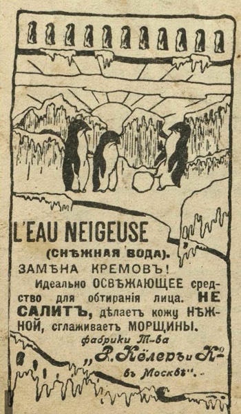 Косметические рубрики журнала пропитаны любовью колумнисток к «заграничным товарам». Восхищённая французской командировкой Э. Адам спешит написать в майском номере за 1913 год: