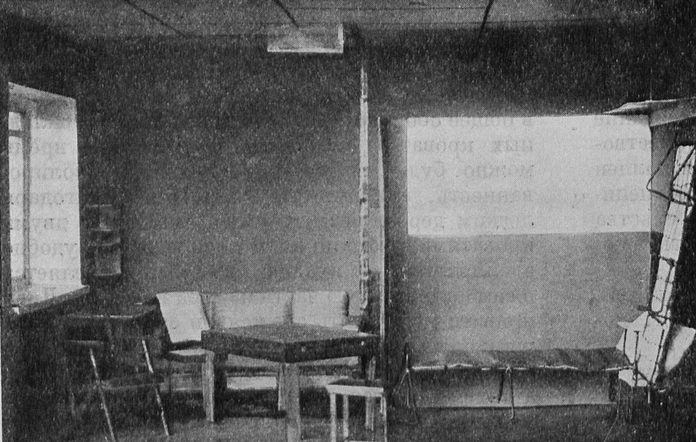 При существующем жилищном кризисе, не позволяющем нам располагать отдельной квартирой в несколько комнат, приходится довольствоваться одной. Поэтому одной из важнейших задач сегодняшнего дня является создание в одной комнате условий культурного существования. По заданию Моссовета нами выполнен макет, представляющий собой жилую, специально меблированную комнату строительства 1928 г., площадью 16,35 кв. м., предназначающуюся для 2–3 человек.