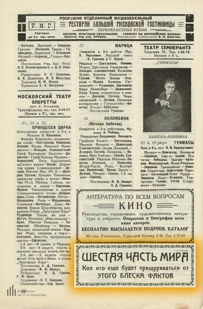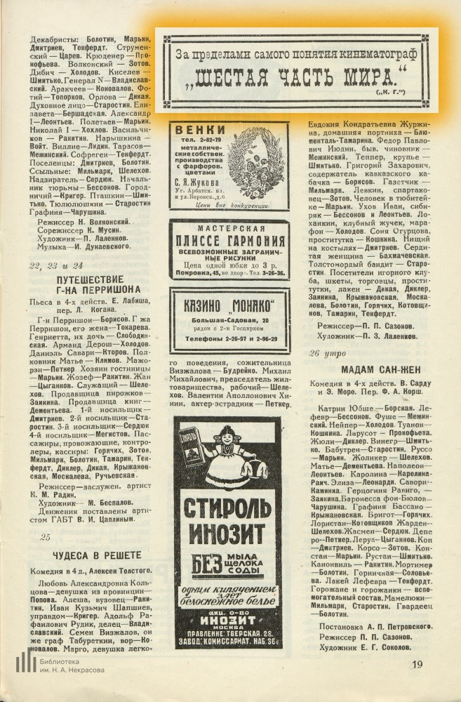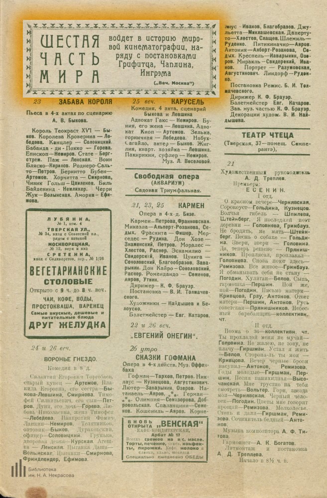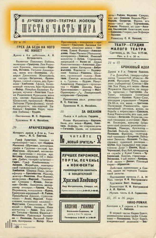 Почитать журнал «Новый зритель» № 50 за 1926 год, можно в электронной библиотеке Некрасовки.